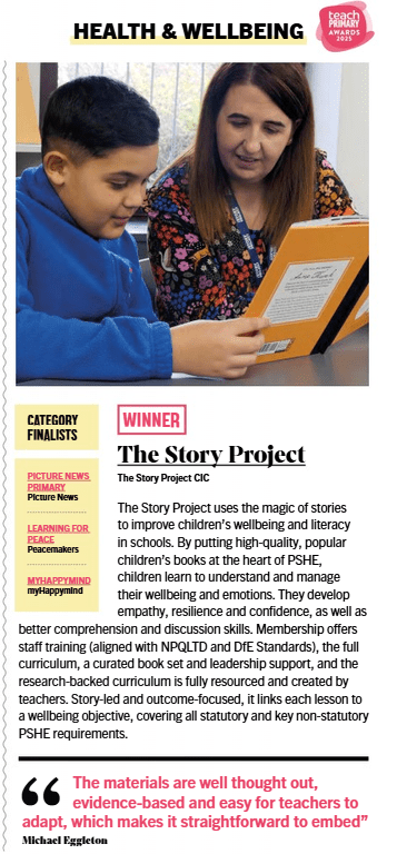Most importantly, the award recognises how valuable stories are in making a positive impact on children’s wellbeing. From first aid to emotions, online safety to empathy, our book-led programme is bringing PSHE and wellbeing education to life, and we couldn’t be prouder.